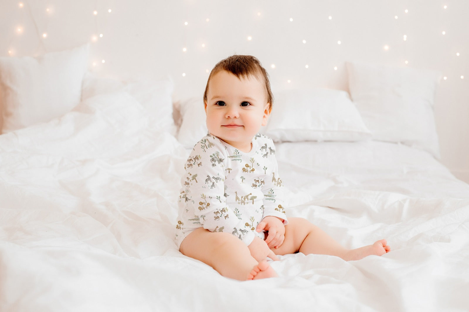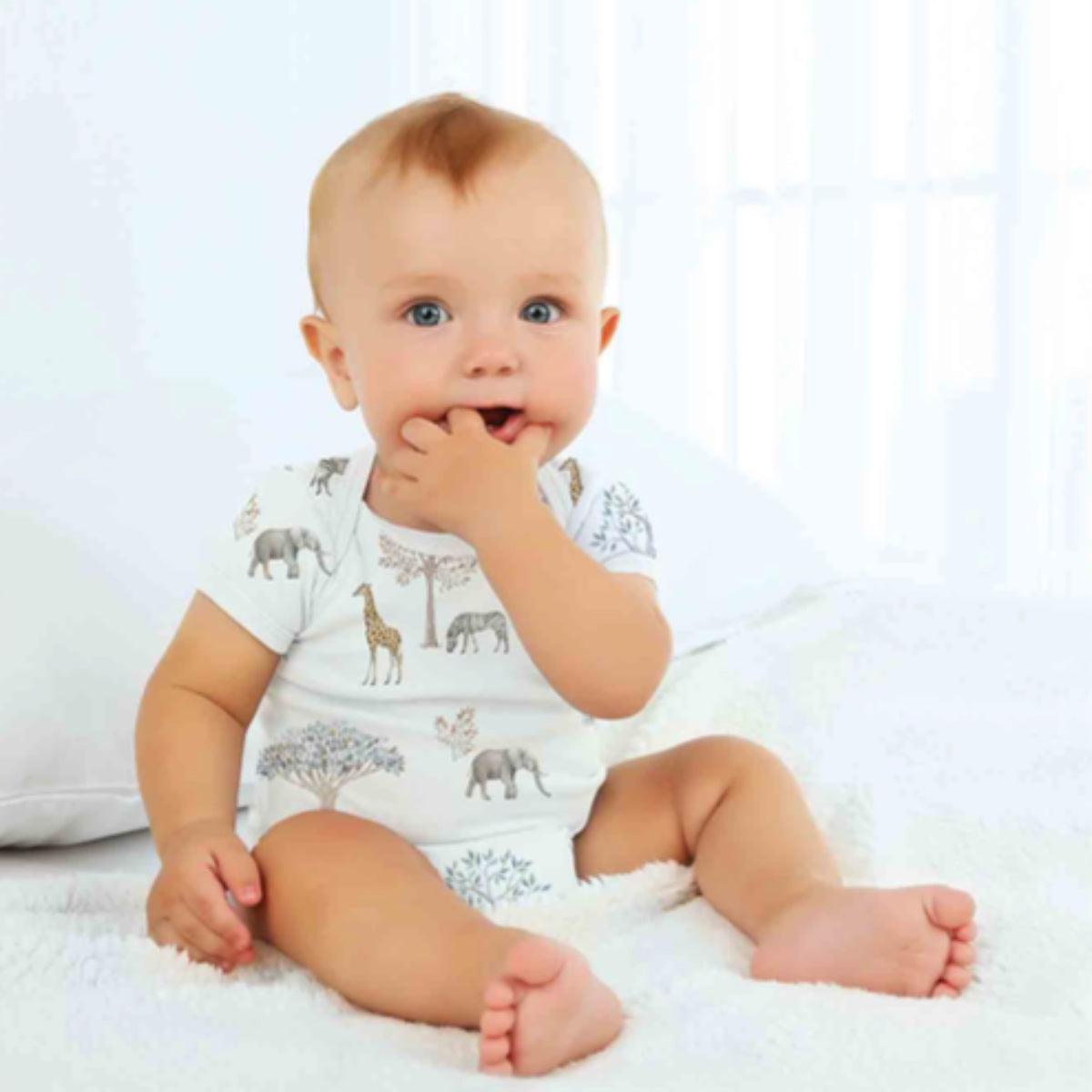 Shop our beautiful range of organic printed cotton. Made from luxuriously soft 200gsm cotton, our range of babywear is soft, stylish and comfortable.